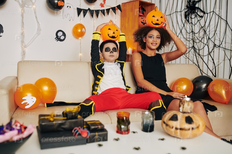Брат и сестра в макияже на Хэллоуин