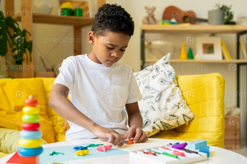 Милый африканский мальчик наливает молоко из бутылки в миску с кукурузными хлопьями
