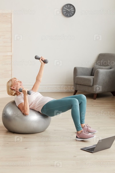 Женщина тренируется дома