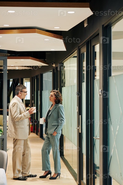 Бизнесмены, стоящие в коридоре офиса
