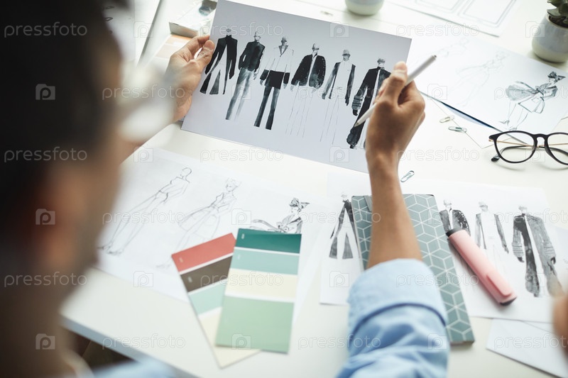 Мужчина смотрит на эскизы