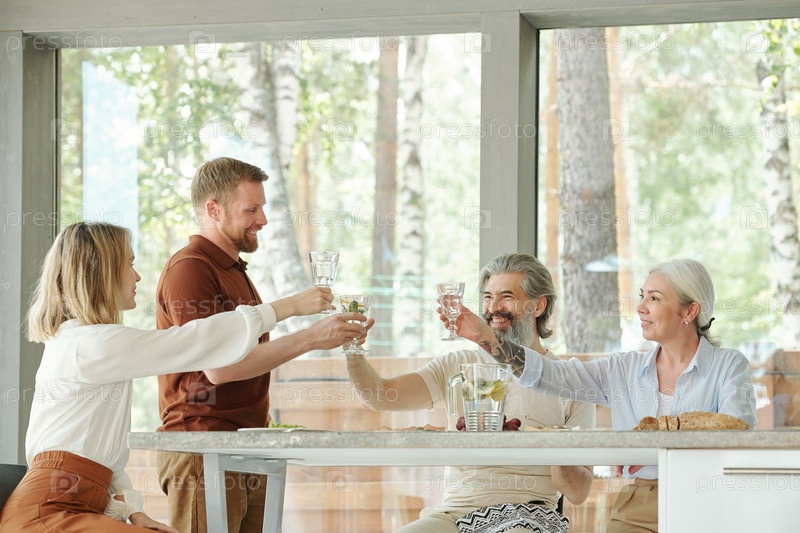 Поднятие стаканов лимонад на семейном обеде