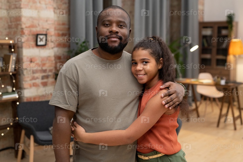 Счастливая африканская девочка-подросток обнимает своего отца в домашней среде