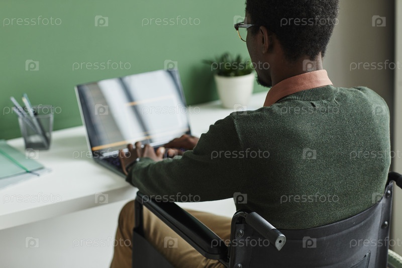 Инвалид работает на ноутбуке