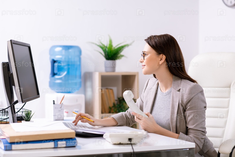 Молодой современный офис-менеджер или руководитель деловой компании сидит за своим столом