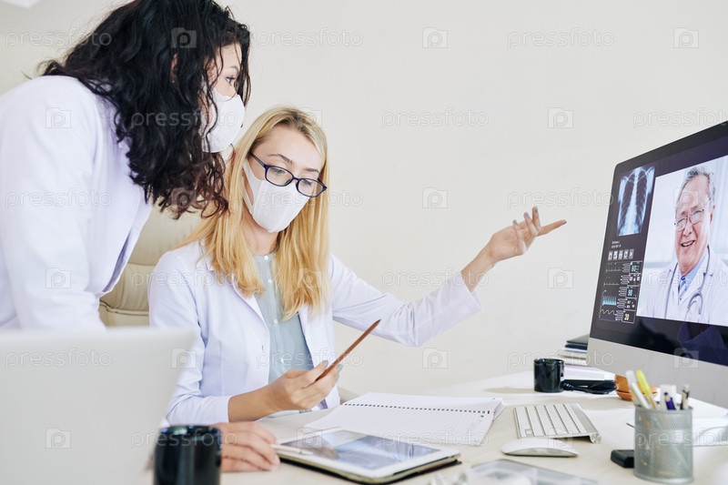 Лабораторные работники разговаривают с пульмонологом