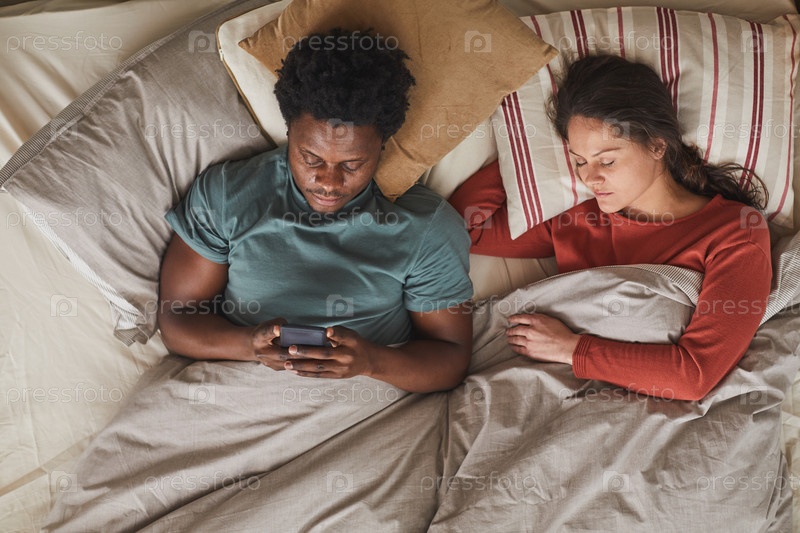 Мужчина, использующий телефон в постели