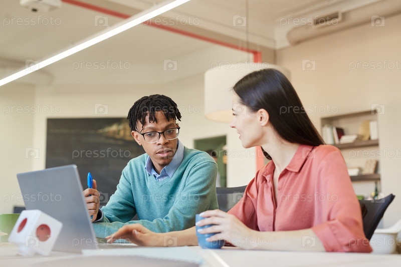 Молодой мужчина и женщина, работающие вместе