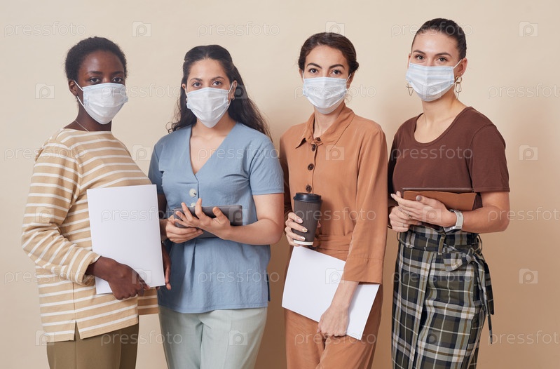 Группа женщин, носящих маски и позирующих
