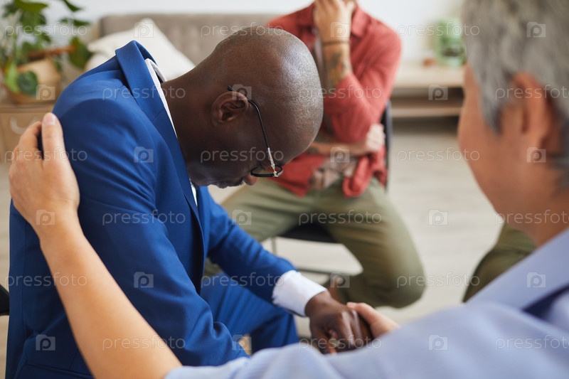 Плачущий мужчина в групповой сессии терапии