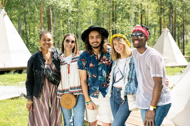 Друзья обнимают друг друга на фестивале