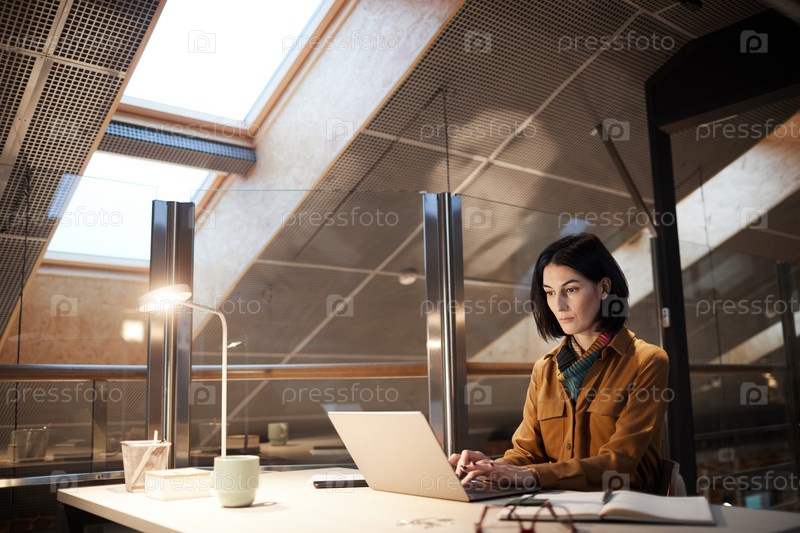 Серьезный менеджер работает на ноутбуке