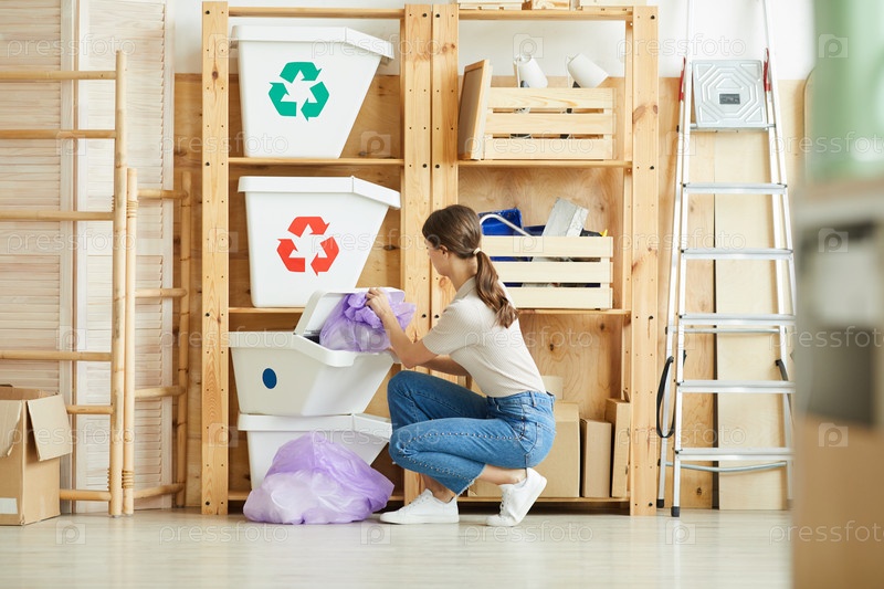Женщина сортирует пакеты с мусором