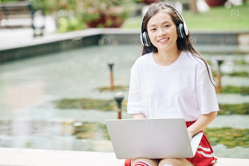 Умная девочка-подросток с ноутбуком