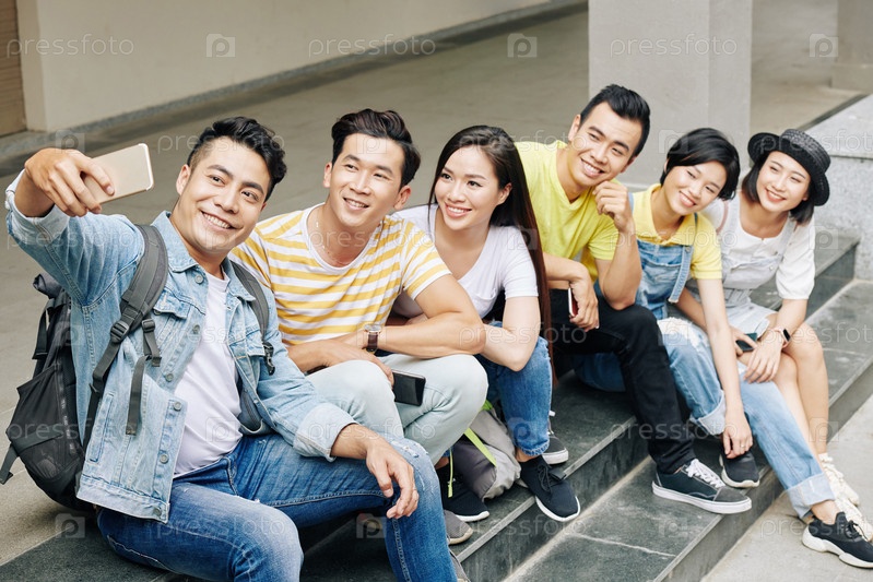 Студент, делающий селфи с друзьями