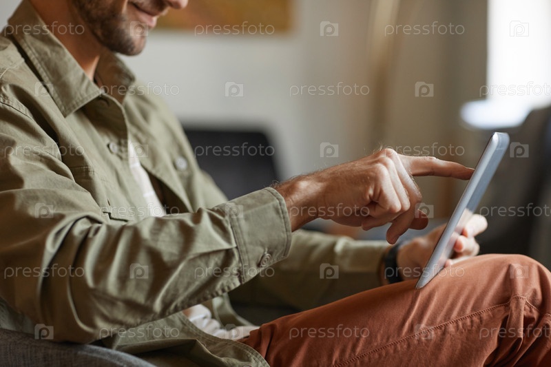 Человек печатает на планшетном компьютере