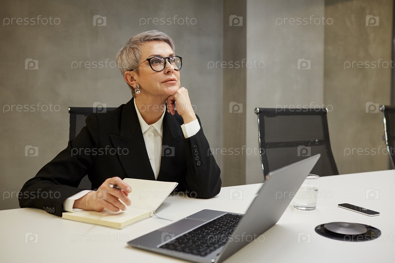 Пенсивная зрелая бизнесвумен на рабочем месте