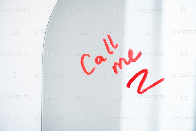 Часть зеркала с просьбой позвонить написана красной или пурпурной помадой