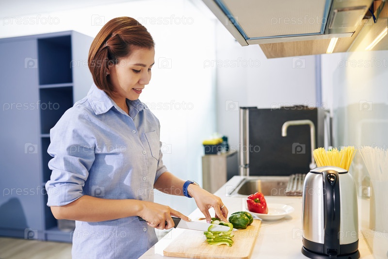 Домашняя хозяйка, режущая перцы