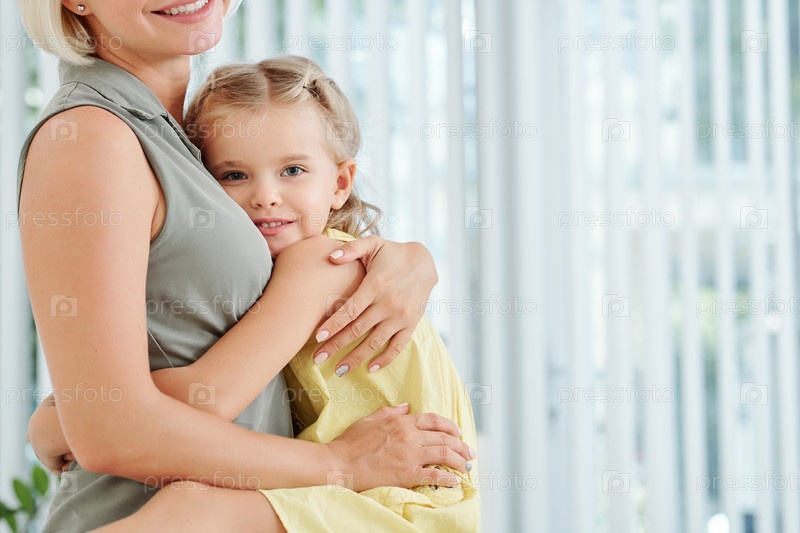 Девочка обнимает маму крепко