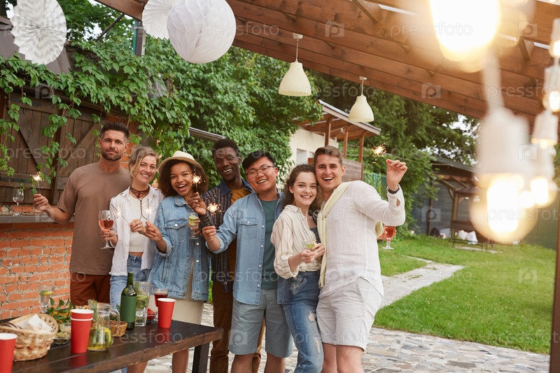 Большая группа друзей на вечеринке под открытым небом