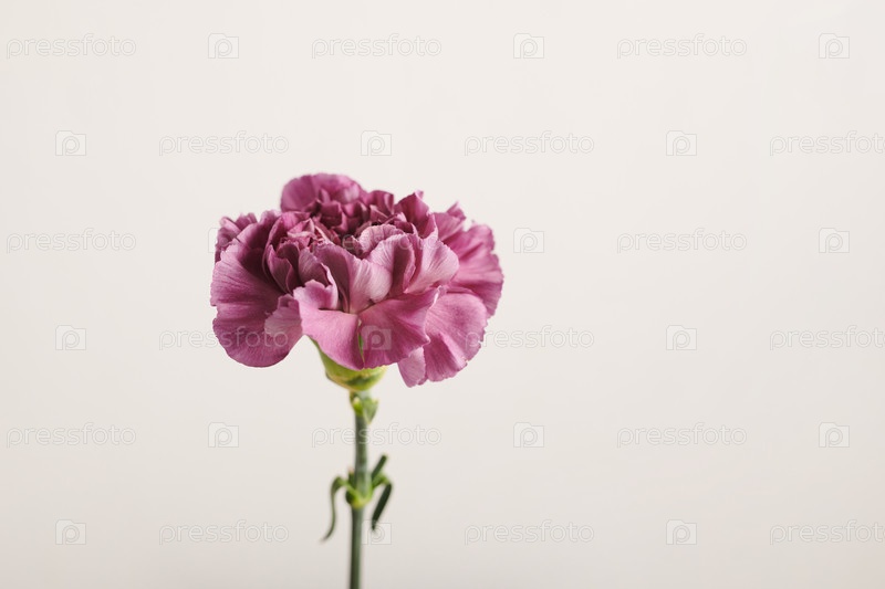 Средний крупный снимок красивого свежего фиолетового цветка на белом фоне стены, копирование пространства