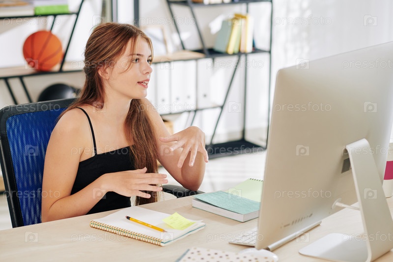 Девушка-подросток проводит онлайн-класс