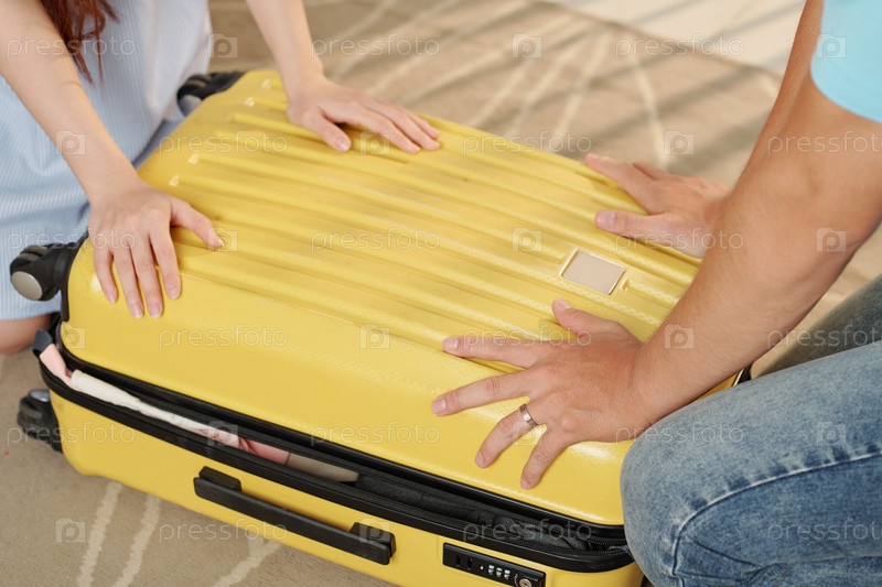 Пара, закрывающая чемодан вместе