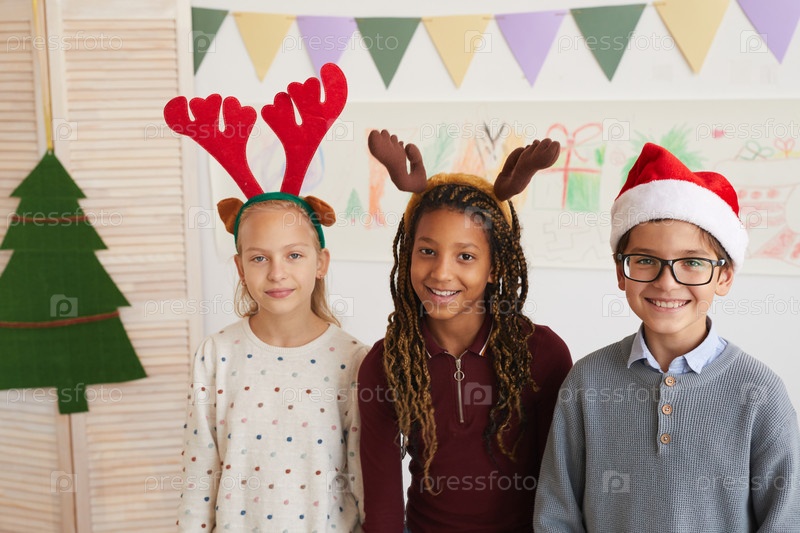 Счастливые дети, позирующие на Рождество