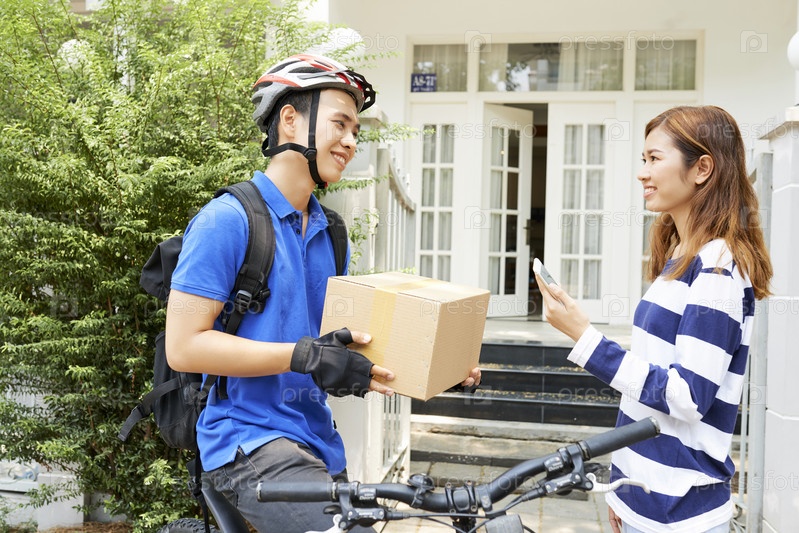 Счастливая женщина получает пакет
