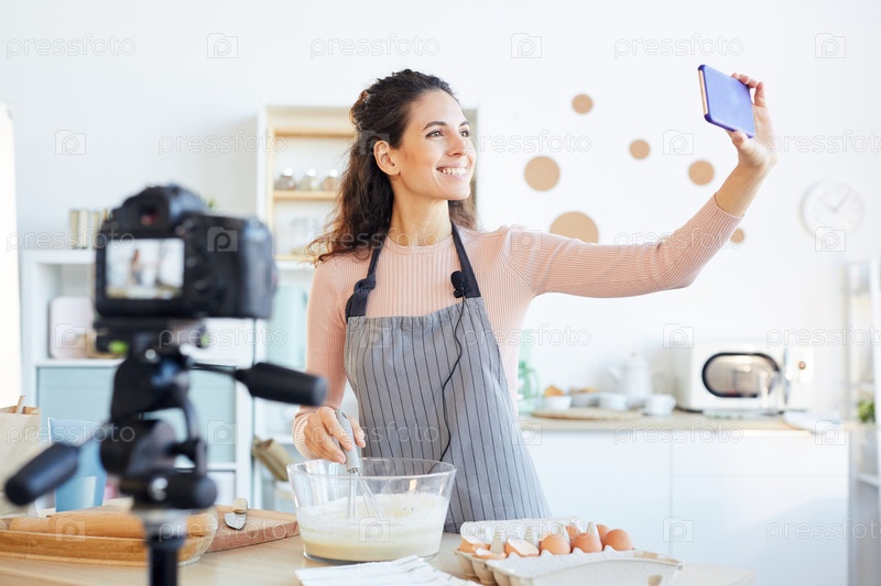 Пищевой блоггер делает селфи