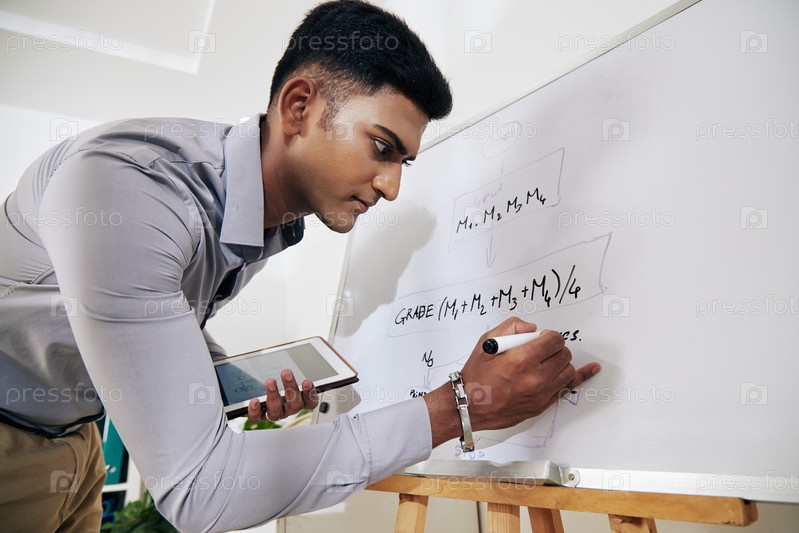 Инженер, рисующий блок-схему