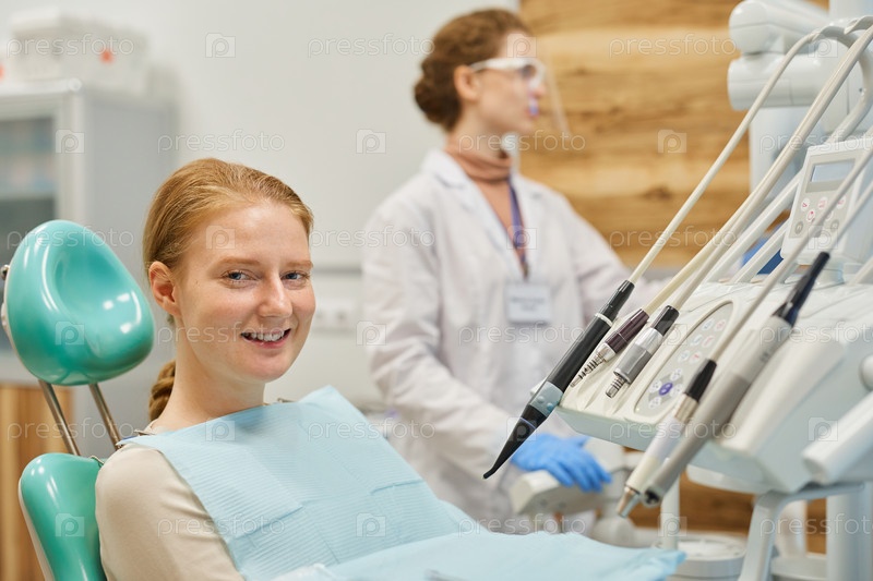 Счастливый пациент, лечащий зубы