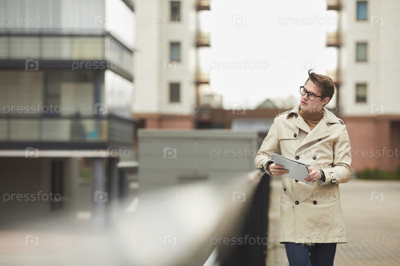 Бизнесмен, держащий Клипборд На улице в городской обстановке Молодой