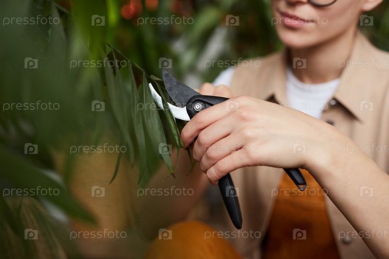 Женщина режет ветвь растения
