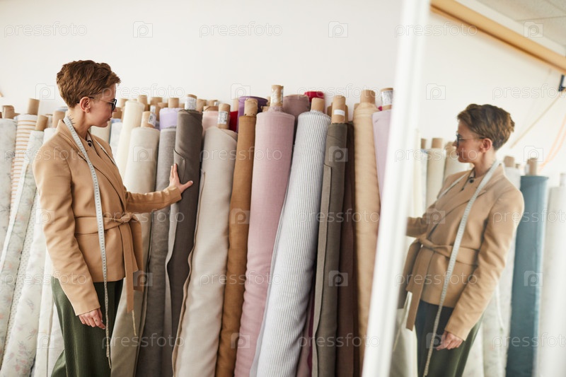 Дизайнер смотрит на современный текстиль