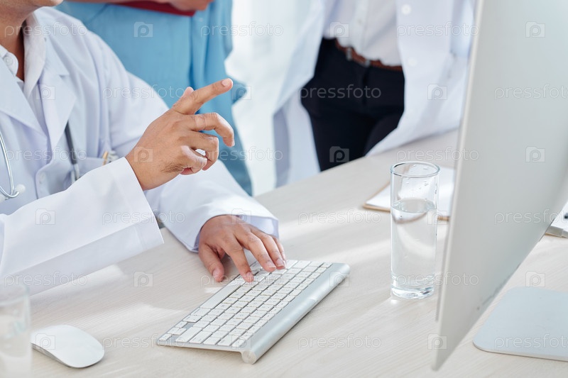 Врач показывает онлайн-отчет коллегам