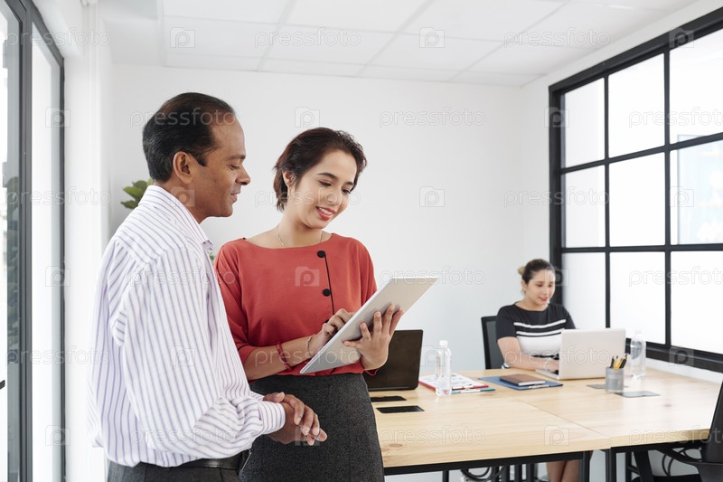 Бизнесмены обсуждают отчет