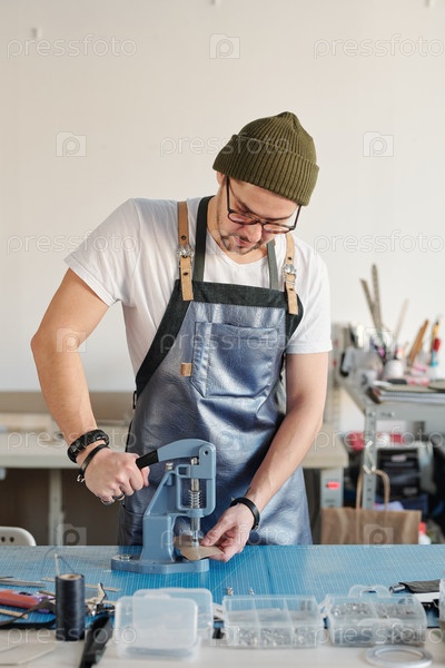 Работа с кожаным ручным прессом