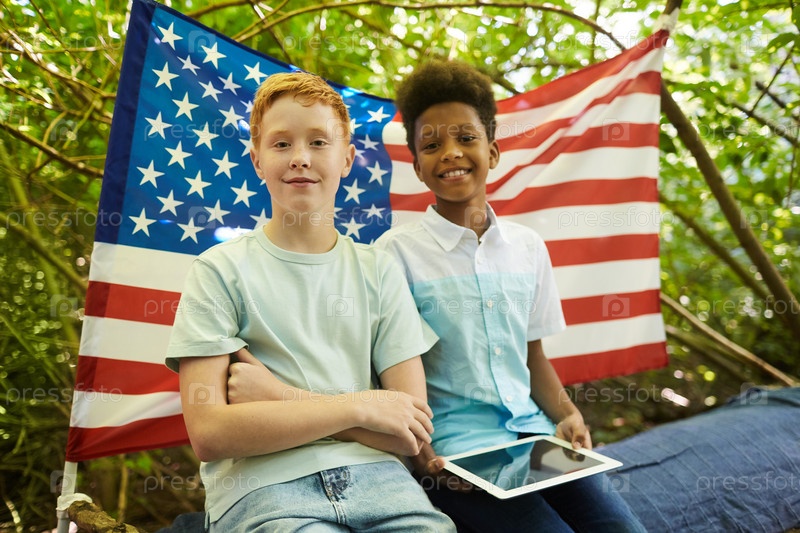 Портрет двух американских мальчиков в лесу