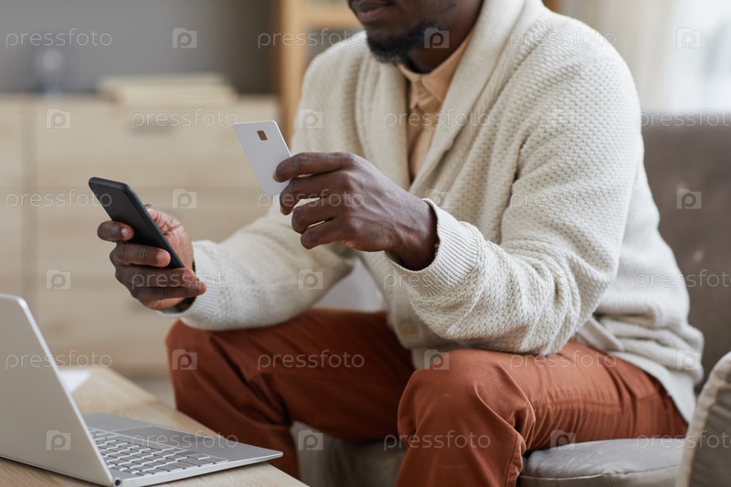 Мужчина платит онлайн с помощью телефона