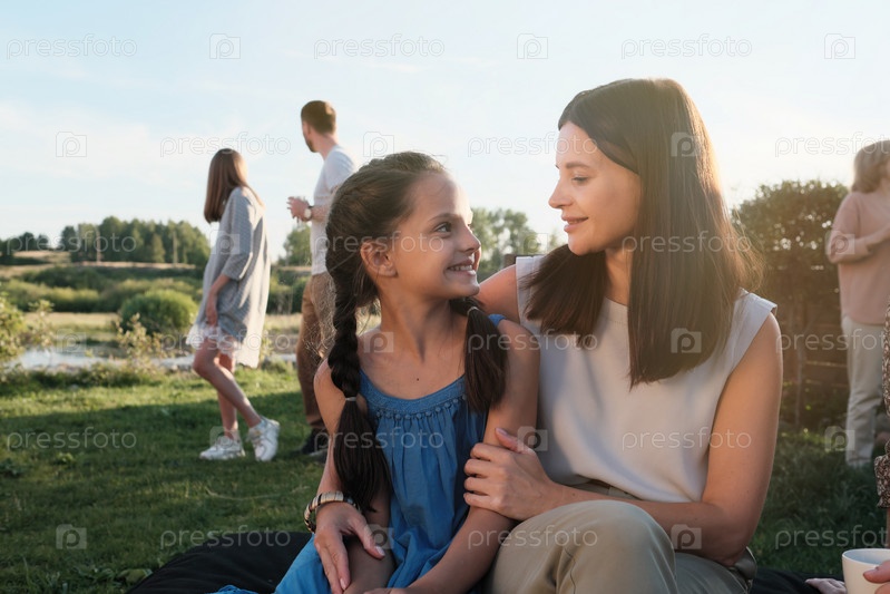 Мать с дочерью, отдыхающей на свежем воздухе