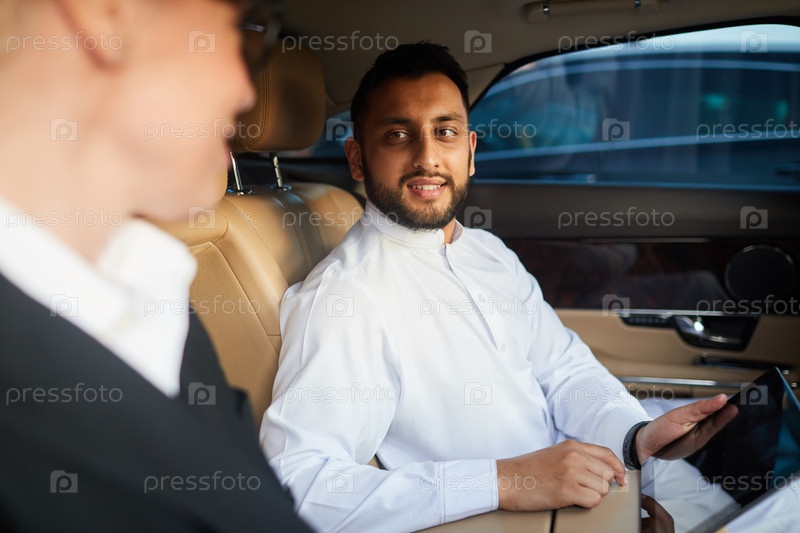 Бизнесмен, использующий планшетный компьютер в машине