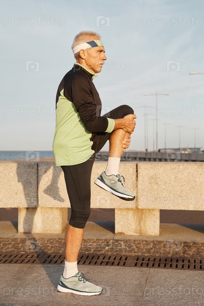Активный старший мужчина согревается на открытом воздухе