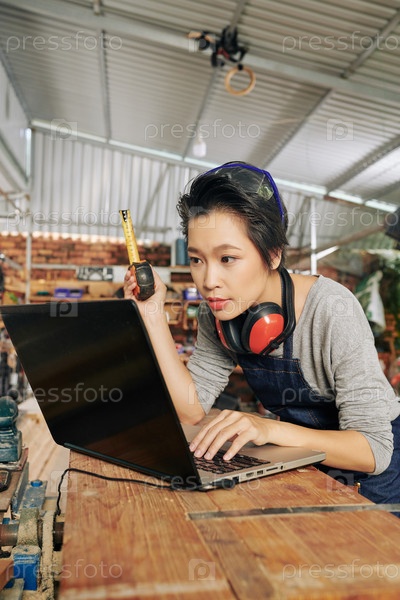 Плотник проверяет размеры мебели