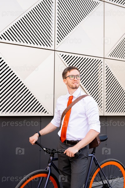 Молодой успешный офис-менеджер в рубашке, галстуке и брюках смотрит в сторону