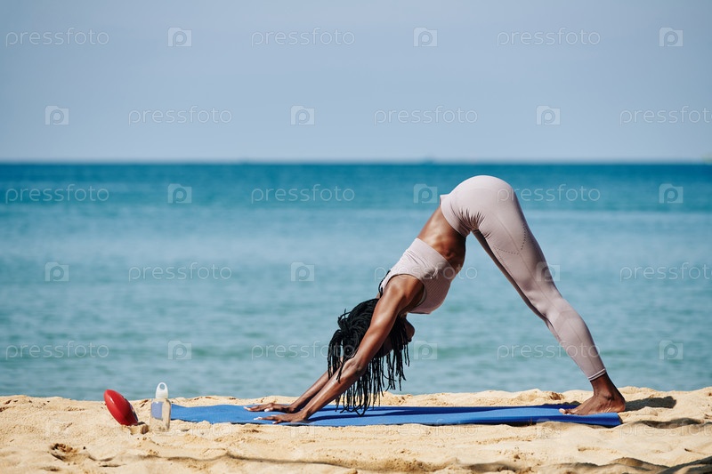 Женщина, стоящая в нисходящей собачьей осанке
