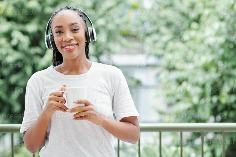 Улыбающаяся женщина стоит на балконе