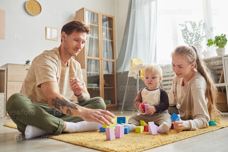 Семья играет с игрушками