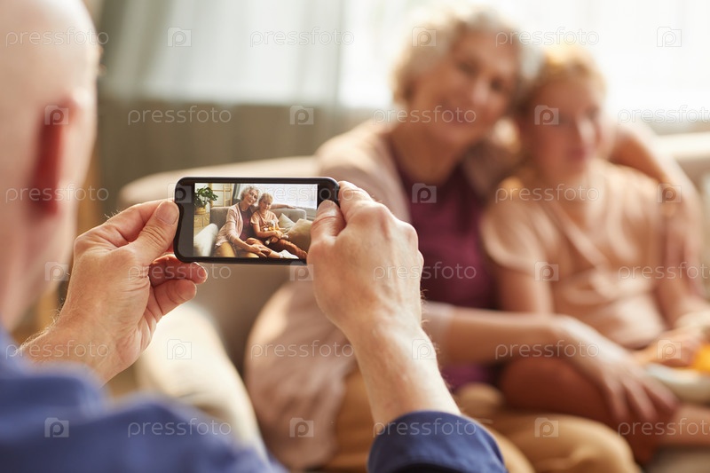 Пожилой мужчина фотографирует со смартфона